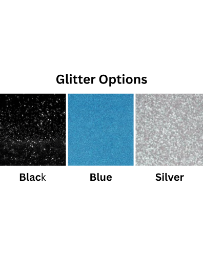 Finished with specialty HTV (Glitter) — shimmer effect; avoid high heat when ironing.